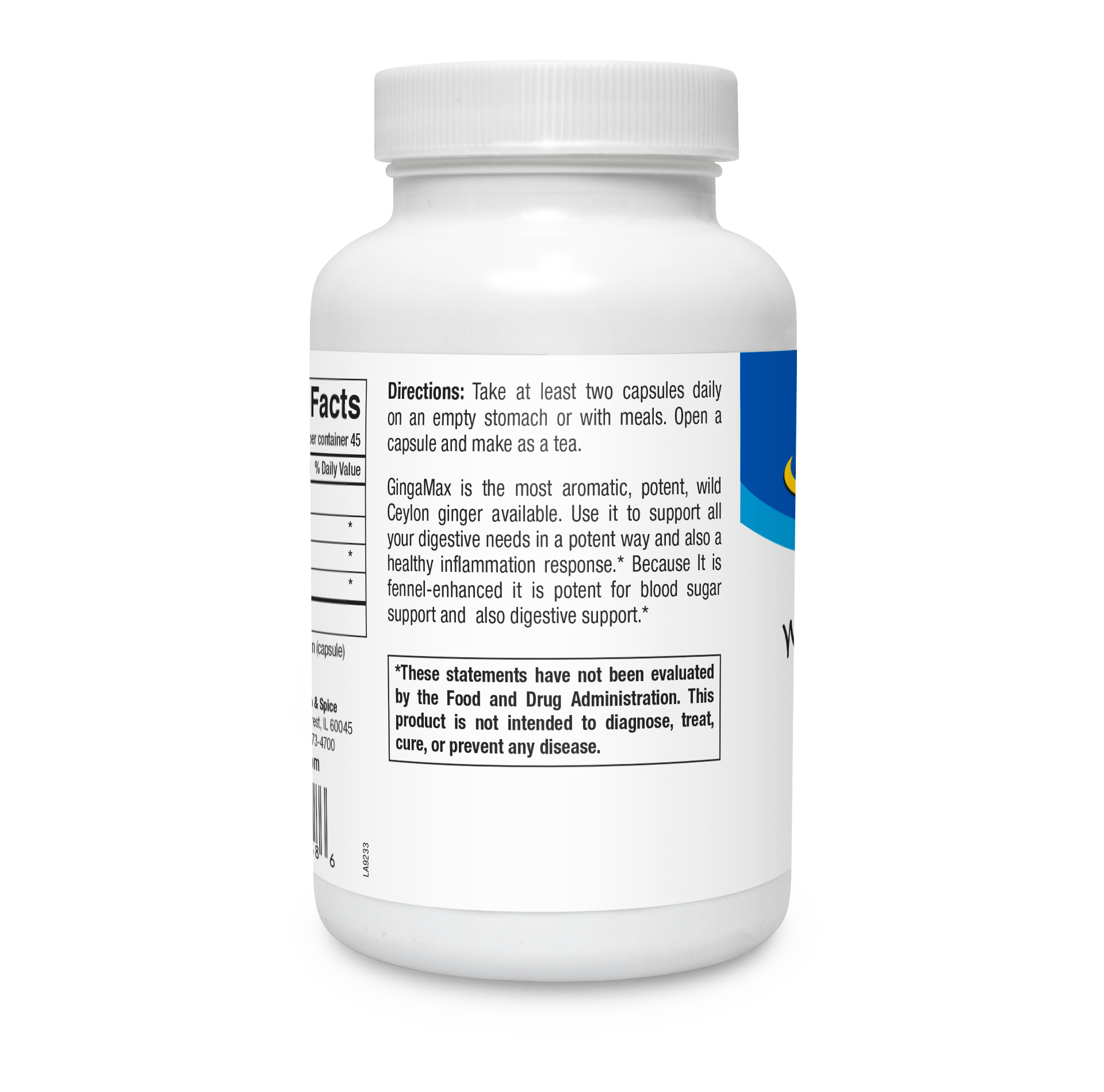 GingaMax is the most aromatic, potent, wild Ceylon ginger available. Use it to support all your digestive needs in a potent way and also a healthy inflammation response. Because It is fennel-enhanced it is potent for blood sugar support and also digestive support.