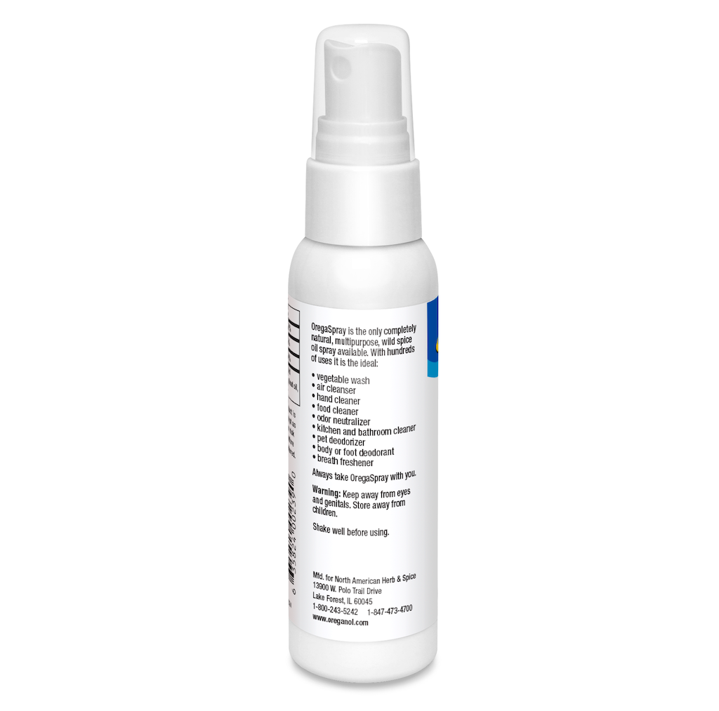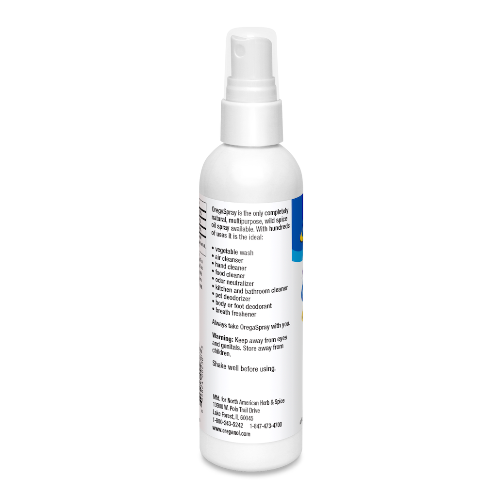 OregaSpray is the only completely natural, edible, multipurpose spray. With hundreds of uses it is the ideal: Vegetable wash, air cleanser, hand cleaner, toothbrush spray, food cleaner, environmental spray, odor neutralizer, kitchen and bathroom cleaner, pet deodorizer, body and foot deodorant, and breath freshener. Keep away from eyes and genitals. Shake well before using.